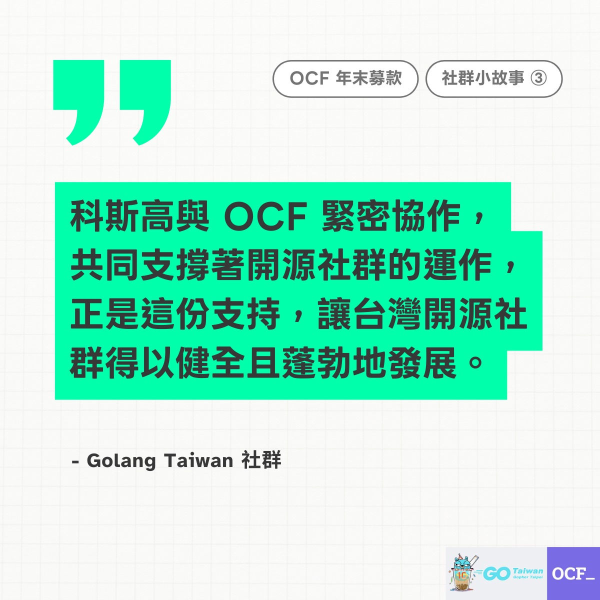 「長期以來,科斯高與 OCF 緊密協作,共同支撐著開源社群的運作,正是這份支持,讓台灣開源社群得以健全且蓬勃地發展。」